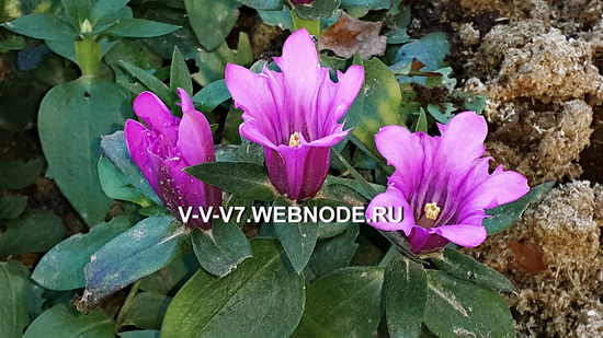 Эффектная гибридная горечавка высотой до 15 см. Компактный, обильноцветущий сорт с крупными яркими пурпурно-розовыми цветками, смотрящими вверх. Цвет чуть насыщеннее, чем у Зуко Ринго. Листья округлой формы, темно-зеленые, плотные. Цветение с конца июля до сентября.
