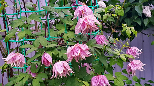 Польский сорт, новинка, в продаже с лета 2013 г. Цветки махровые, очень крупные для княжиков - диаметром 10-12 см колокольчиковидные, слегка пахнущие грейпфрутом, на пурпурных цветоносах. У цветка 4 внешних крупных, причудливо закрученных чашелистика, насыщенно-розовые снаружи и светло-розовые внутри. В середине цветка находятся около 15 лепестков такой же длины, ярко-розовые. Листья у этого сорта темно-зеленые, красивой фактуры. Высота побегов 2-3 м. Морозостоек и неприхотлив. Любит хорошо освещенные места, но не слишком жаркие. Переносит полутень.