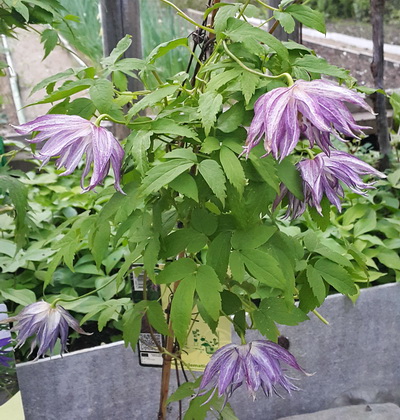 Новый сорт из Польши 2020 года. Самый интересный сорт, серии сюрпрайзов. Цветы крупные, сильно-махровые, лилово-розового цвета в штриховку. Осенью выдал очень красивую окраску, но не факт, что это будет повторяться постоянно. Высота лианы около 3 м. Нарастает легко. Один из самых необычных сортов.